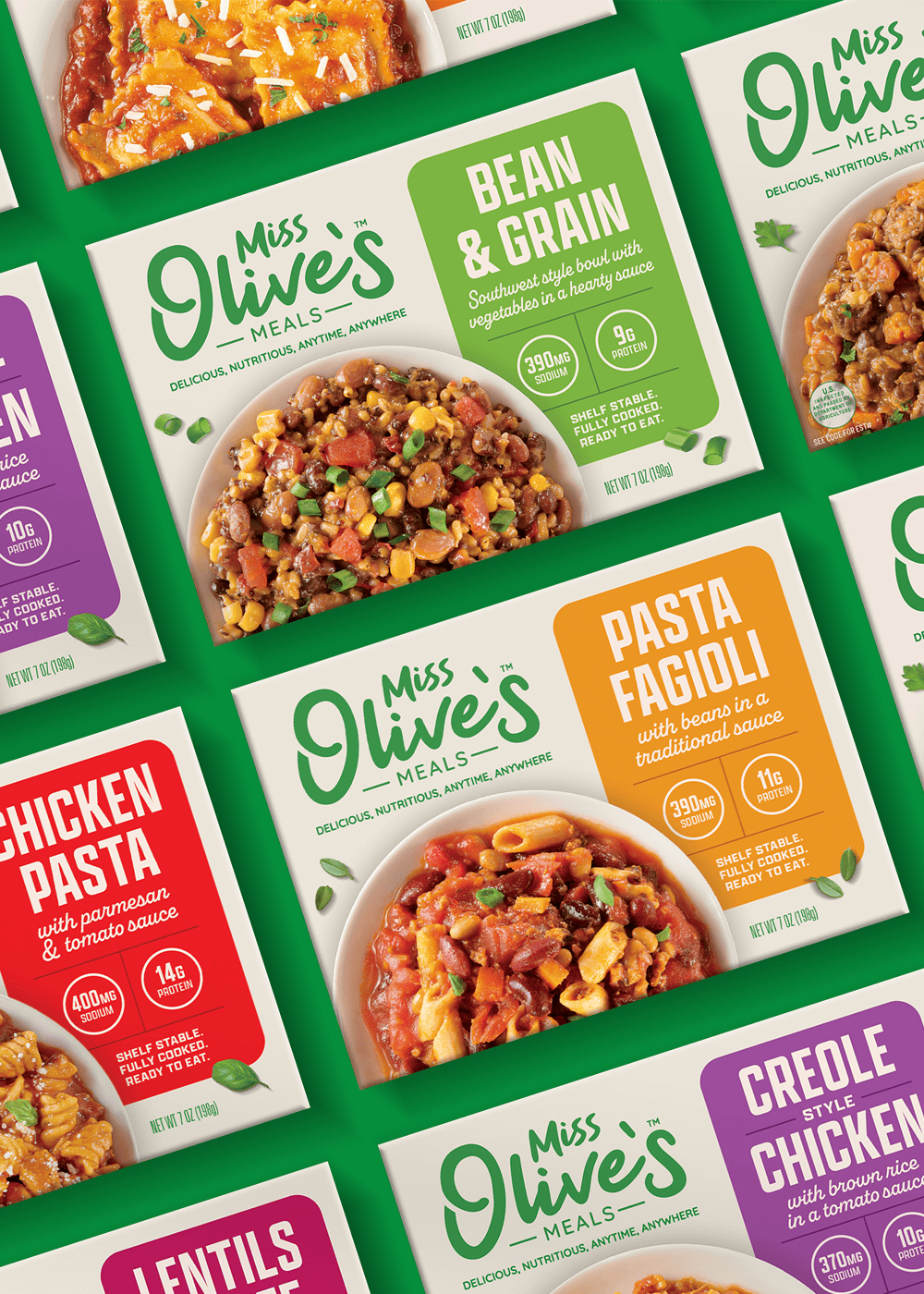 We currently offer nine flavors: Bean & Grain Bowl; Cheese Ravioli; Chicken Pasta Parmesan; Chicken Creole; Lentils & Beef; Pasta Fagioli; Chicken Tinga, Chicken Tikka Masala, and Chicken Teriyaki.